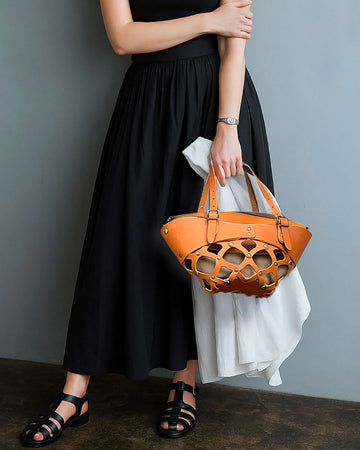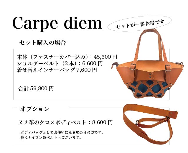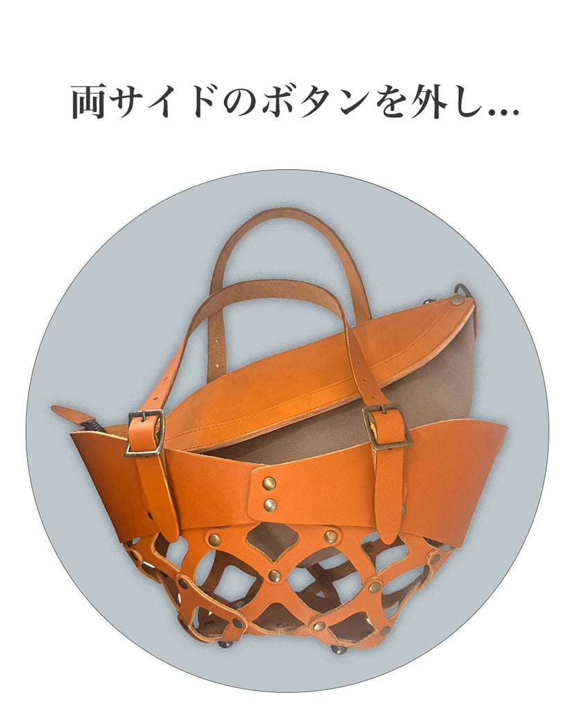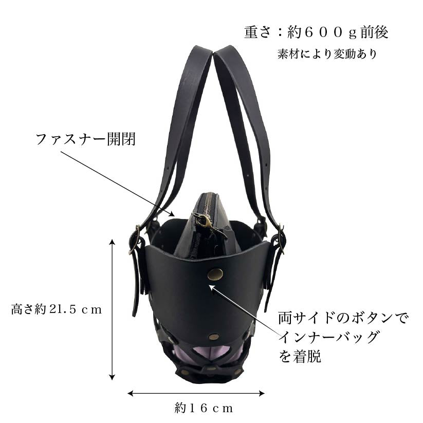 革の本体とインナーバッグは10個のバネホックで連結しておりますので、インナーバッグ単体をご購入いただければ着せ替えて楽しむことができます。単品価格:6,500円(税込)でご購入いただけます。