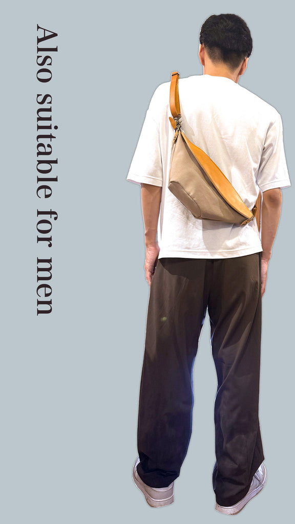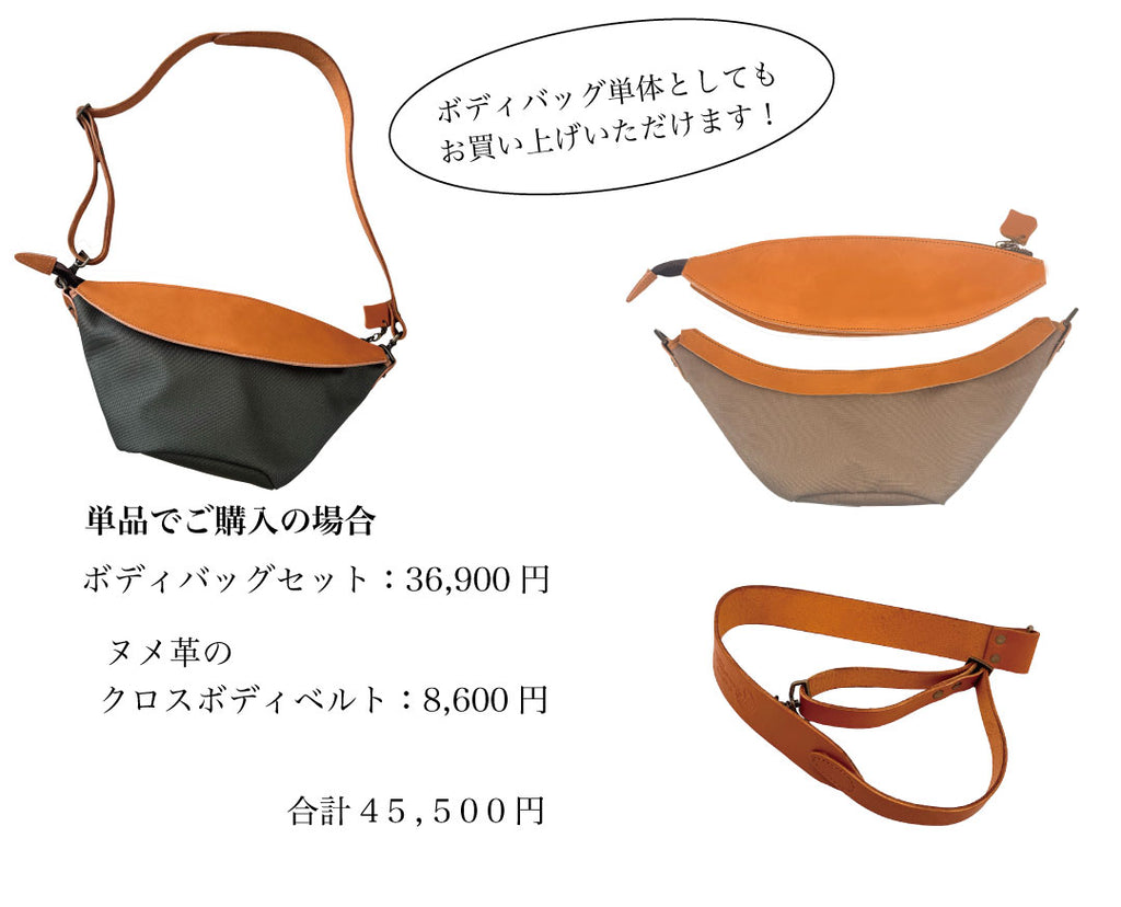 お好みの革の色(3色から)をお選びください。その後ナイロン製か本革製のショルダーストラップかをお選びください。お好みの着せ替えできるインナーバッグでお作りします。