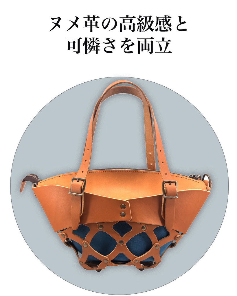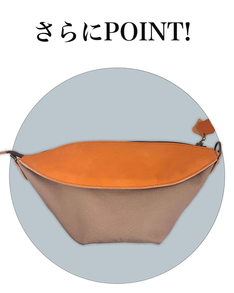本体素材:ヌメ革、カシメ、ファスナー、Dカン、ホック