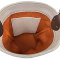 上部はただ折り返して仕上げることもできましたが、あえて帆布のベルトを作りぐるっと上下にステッチするという手間がかかる仕上げで頑張りました。内側から見ても美しく、そしてしっかりし、可愛さが増しました。